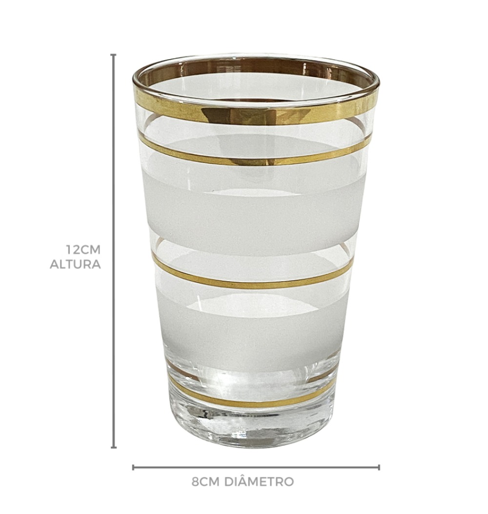 Copo vidro frisos dourados e fosco
