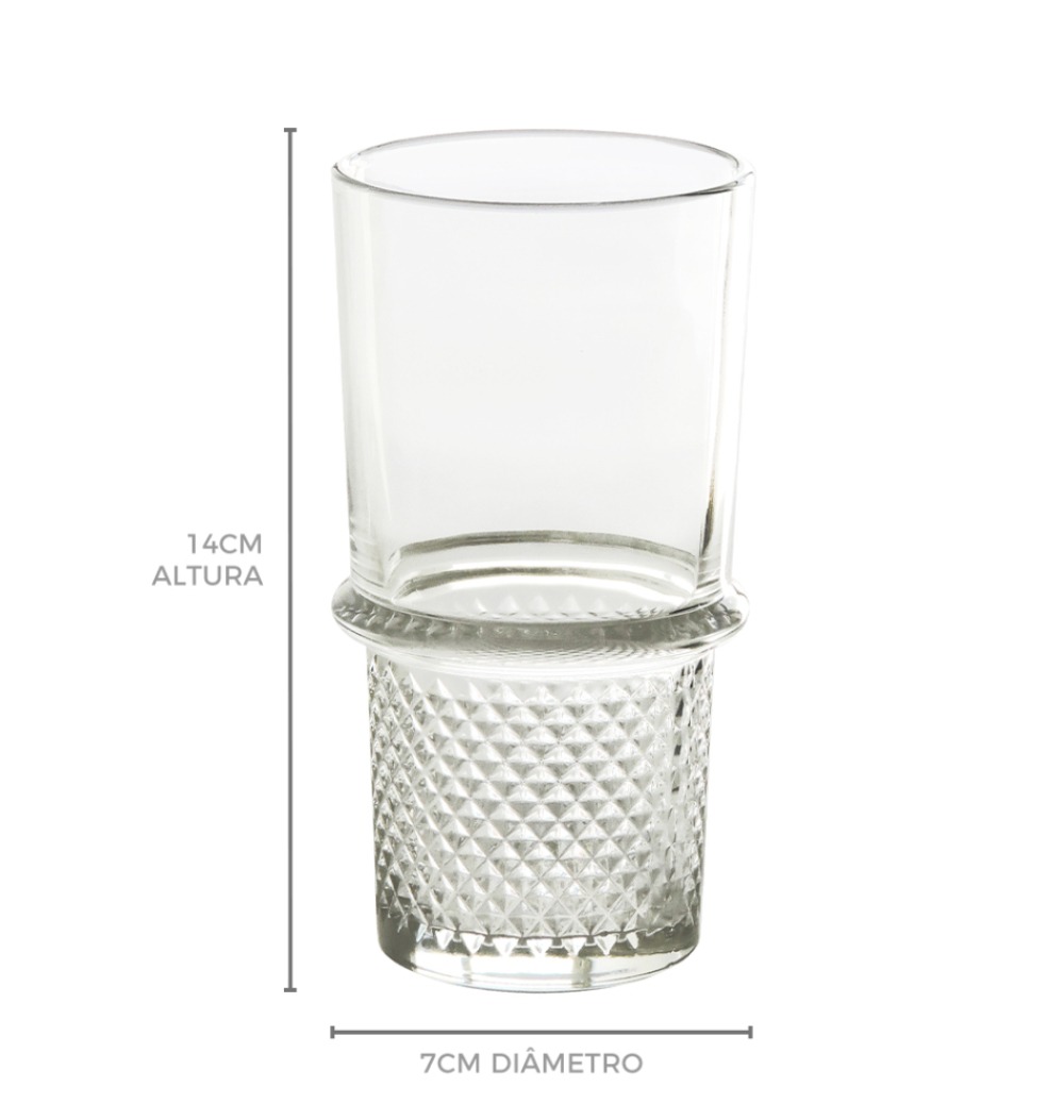 Set 6 copos de vidro temperado lapidado alto
