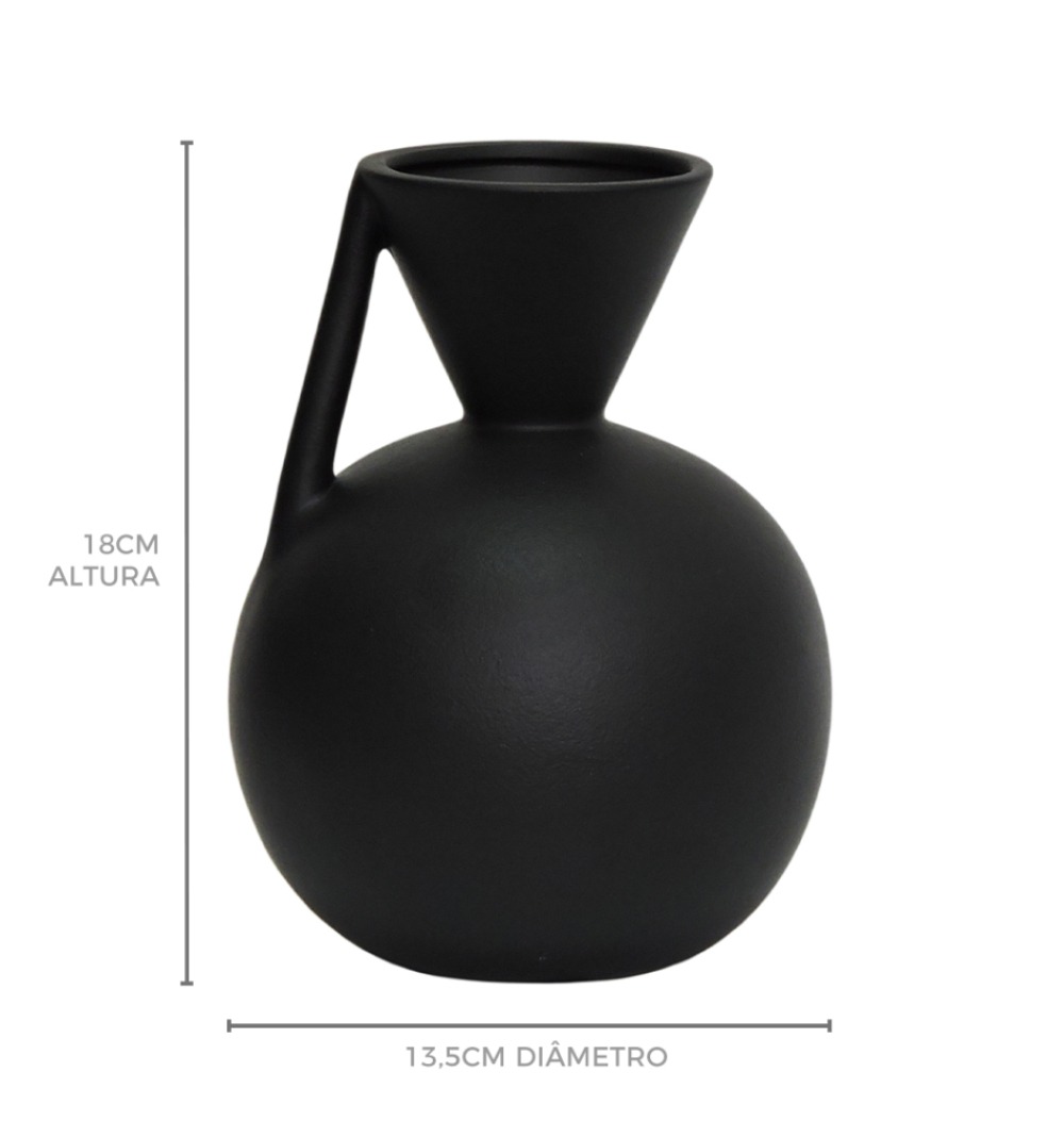Vaso cerâmica bojudo com alça reta preto