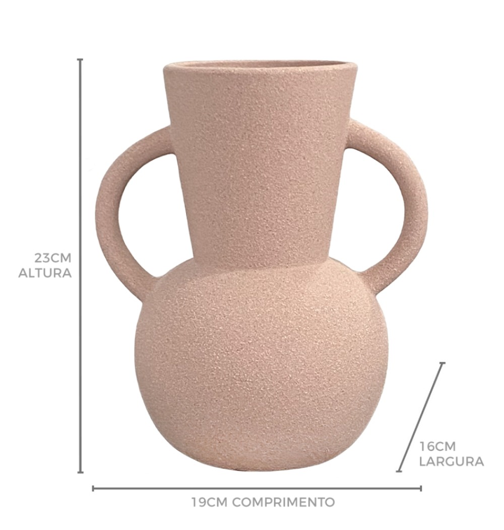 Vaso cerâmica bojudo com alça texturizado bege