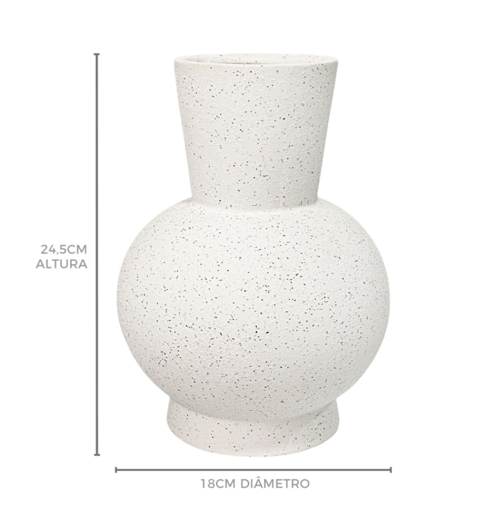 Vaso cerâmica branco fosco textura preta