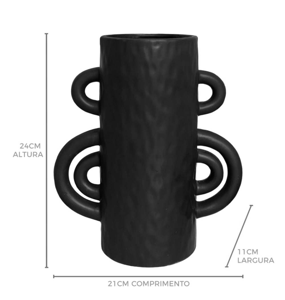 Vaso cerâmica fosca preto alças