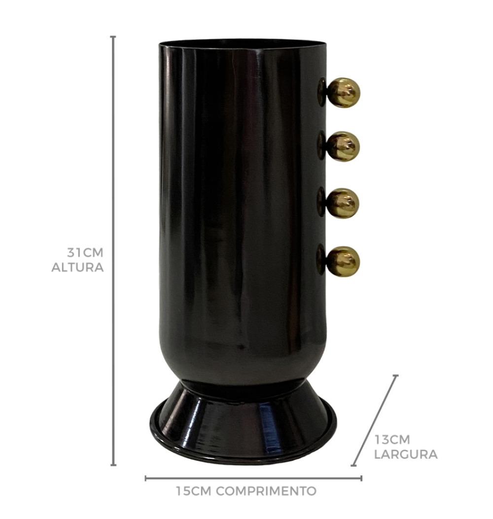 Vaso metal grafite reto bolas douradas laterais