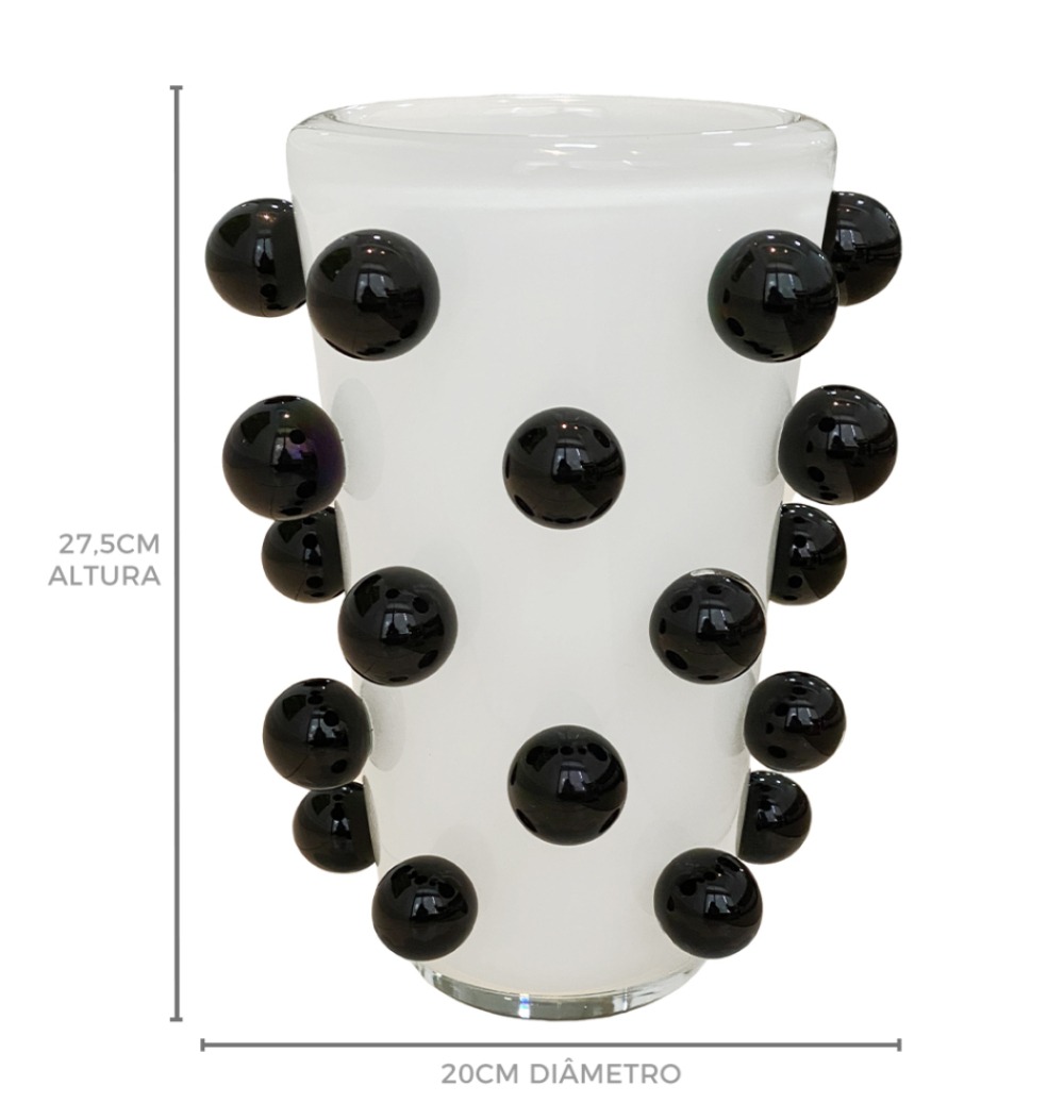 Vaso murano branco bolas pretas