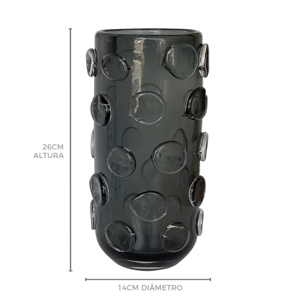 Vaso vidro cinza M relevo bolas