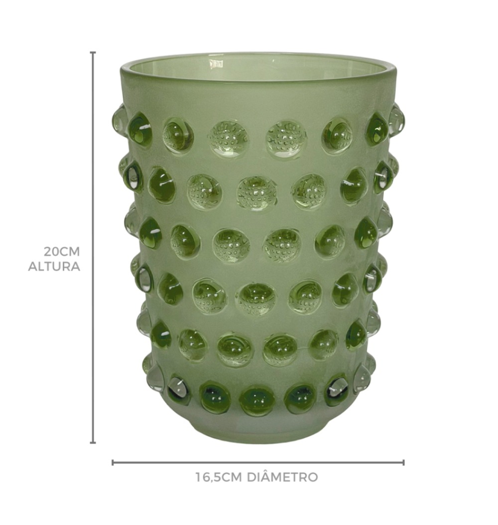 Vaso vidro jateado verde bolas relevo